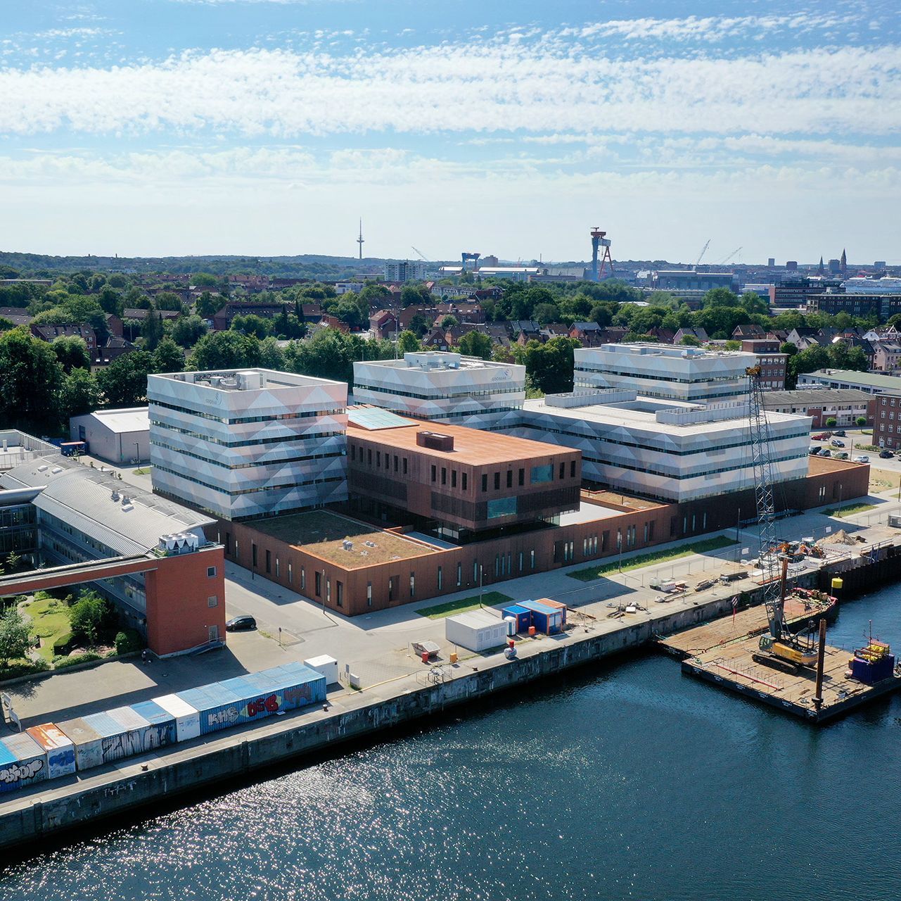 Seit September 2023 sind alle Bereiche und Einheiten des GEOMAR in einem modernen Neubau am Seefischmarkt in Kiel vereint – und bilden damit einen einzigartigen meereswissenschaftlichen Campus.